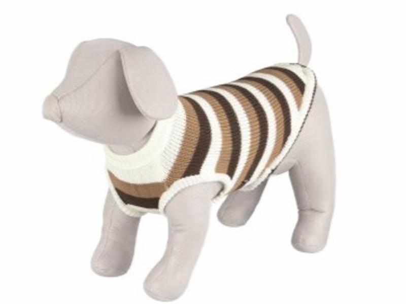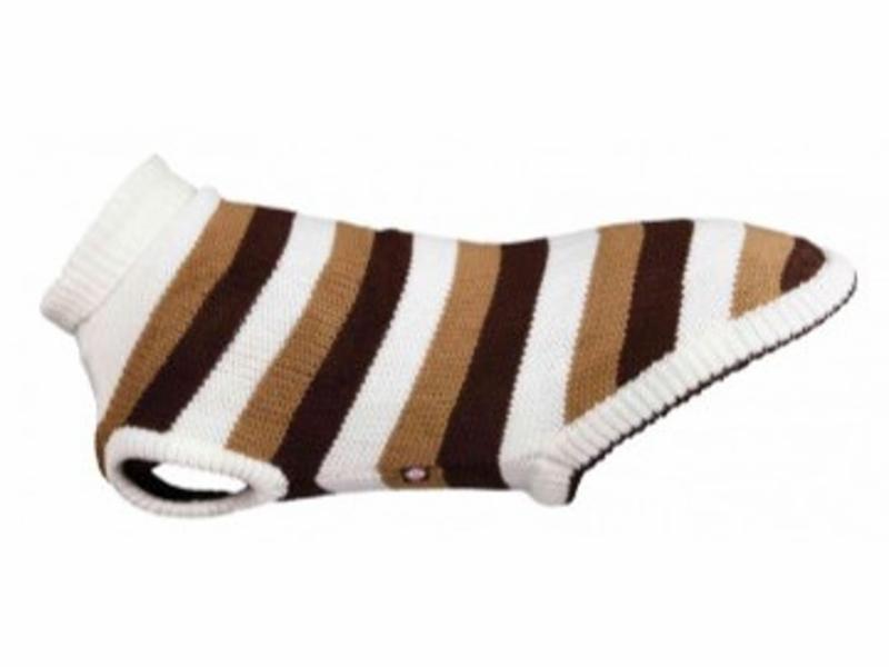 • Ribbestrikket nakke og forsterket søm • Designer-merke på baksiden • Med løkker for bakbena • Laget av syntetisk ull • Farge: Brun/hvite striper