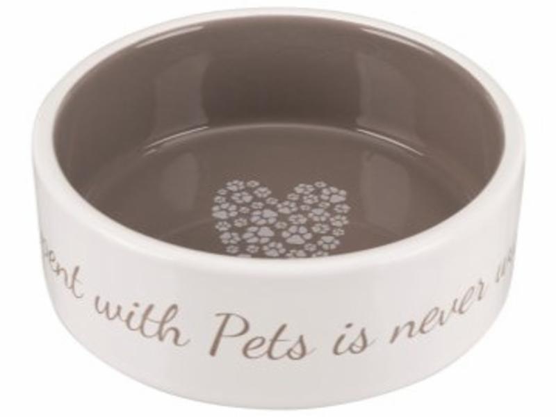 Teksten på skål i taupe: Time spent with Pets is never wasted